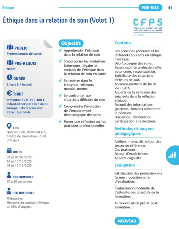 Formation professionnelle CHU Angers - Éthique dans la relation de soin